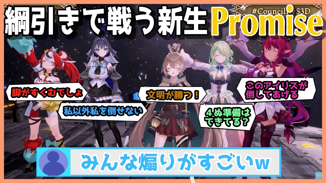3D綱引きで暴れまくる新生Promiseの5人【日英両...
